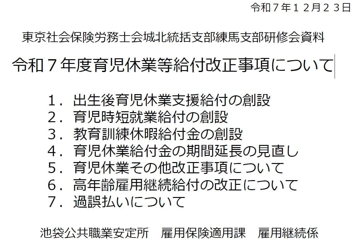 令和7年度育児休業等給付改正事項についてわかりやすくお話しいただきました。